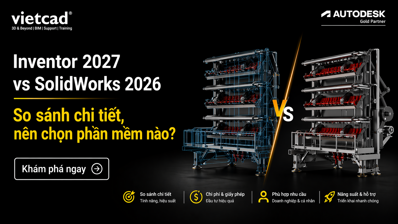 VietCAD | Inventor 2027 vs SolidWorks 2026: So sánh chi tiết, nên chọn phần mềm nào?