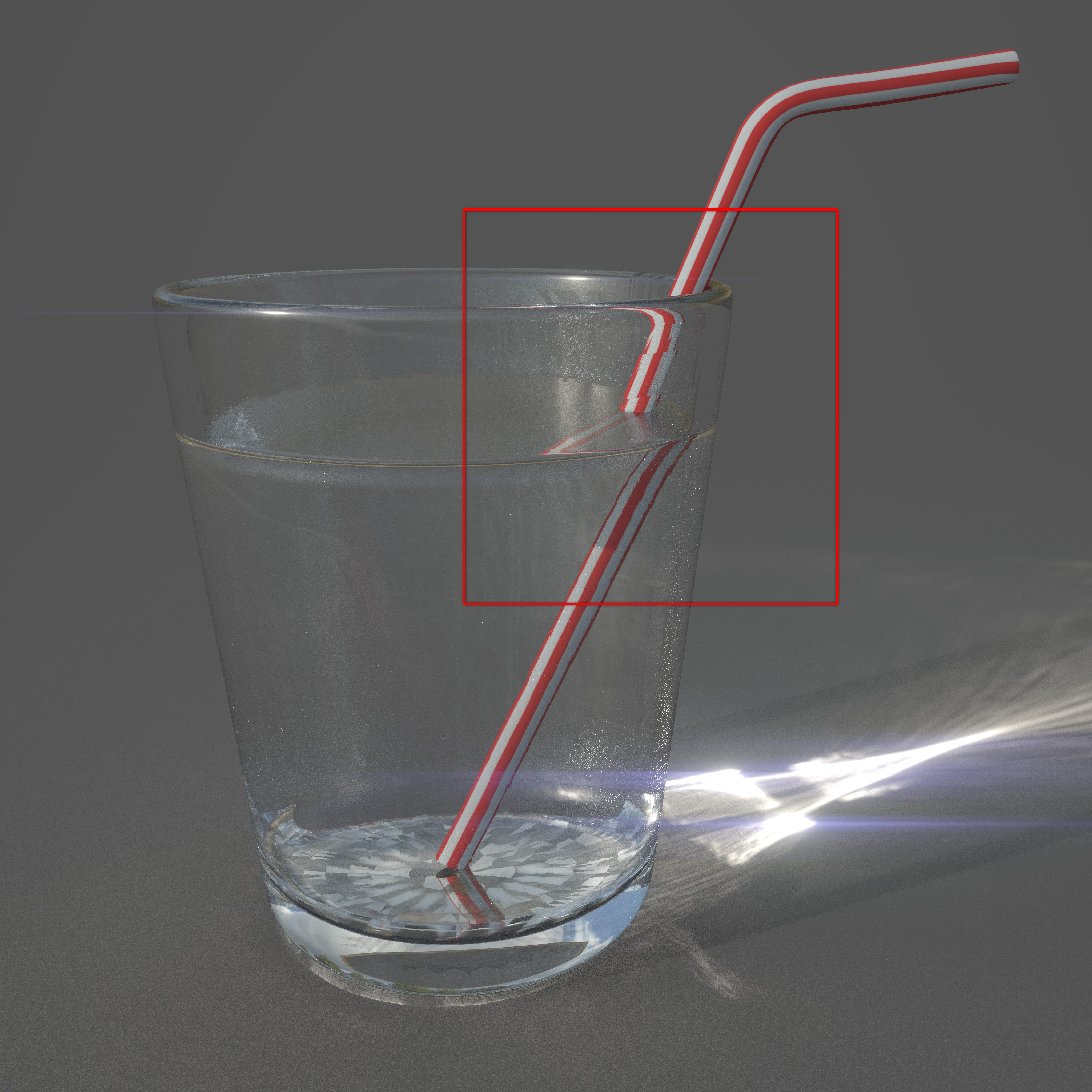 Khúc xạ là sự thay đổi hướng của tia sáng. Khi ánh sáng di chuyển từ môi trường này sang môi trường khác, nó sẽ thay đổi tốc độ và hướng. Chỉ số khúc xạ, hay IOR (Index of Refraction), là một phép đo quang học mô tả sự thay đổi hướng mà tia sáng truyền đi. Về cơ bản, giá trị IOR được sử dụng để xác định mức độ tia sẽ bị bẻ cong khi truyền qua môi trường này sang môi trường khác. Ví dụ, nước có IOR là 1,33, trong khi tấm kính có IOR là 1,52 và không khí tất nhiên là 1.0. Trong hình 05, bạn có thể thấy hình vẽ một chiếc ống hút được đặt trong một cốc nước. Ống hút có vẻ bị cong do hiện tượng khúc xạ khi ánh sáng truyền qua các môi trường khác nhau (không khí, nước và thủy tinh).